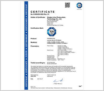 麗輝光伏結(jié)合10多年連接器生產(chǎn)管理的經(jīng)驗(yàn),企業(yè)通過(guò)了ISO9001等體系認(rèn)證,同時(shí)我們擁有標(biāo)準(zhǔn)現(xiàn)代化廠(chǎng)房,并配備各種自動(dòng)化生產(chǎn)設(shè)備、先進(jìn)檢測(cè)設(shè)備,依托多個(gè)知名的認(rèn)證服務(wù)商,產(chǎn)品通過(guò)TUV等認(rèn)證,目前我們接線(xiàn)盒日產(chǎn)量達(dá)到9萬(wàn)套。我們產(chǎn)品具備:品種多、設(shè)計(jì)新穎、市場(chǎng)覆蓋區(qū)域性廣等特征,產(chǎn)品備受?chē)?guó)內(nèi)外各地知名光伏組件制造商的指定和認(rèn)可,目前我們的光伏接線(xiàn)盒、光伏連接器已經(jīng)在多個(gè)地區(qū)的光伏系統(tǒng)、光伏電站起到了連接和保護(hù)作用,麗輝為您提供專(zhuān)業(yè)光伏連接解決方案!